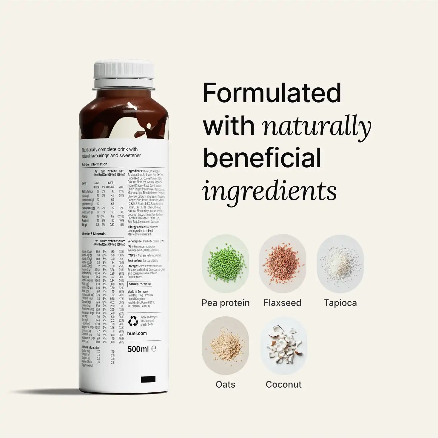 HUEL Ready-to-Drink is a nutritionally complete, plant-based meal in a bottle. Designed for convenience, taste, and health, each 500ml bottle delivers a perfect balance of protein, carbs, healthy fats, and essential vitamins & minerals.