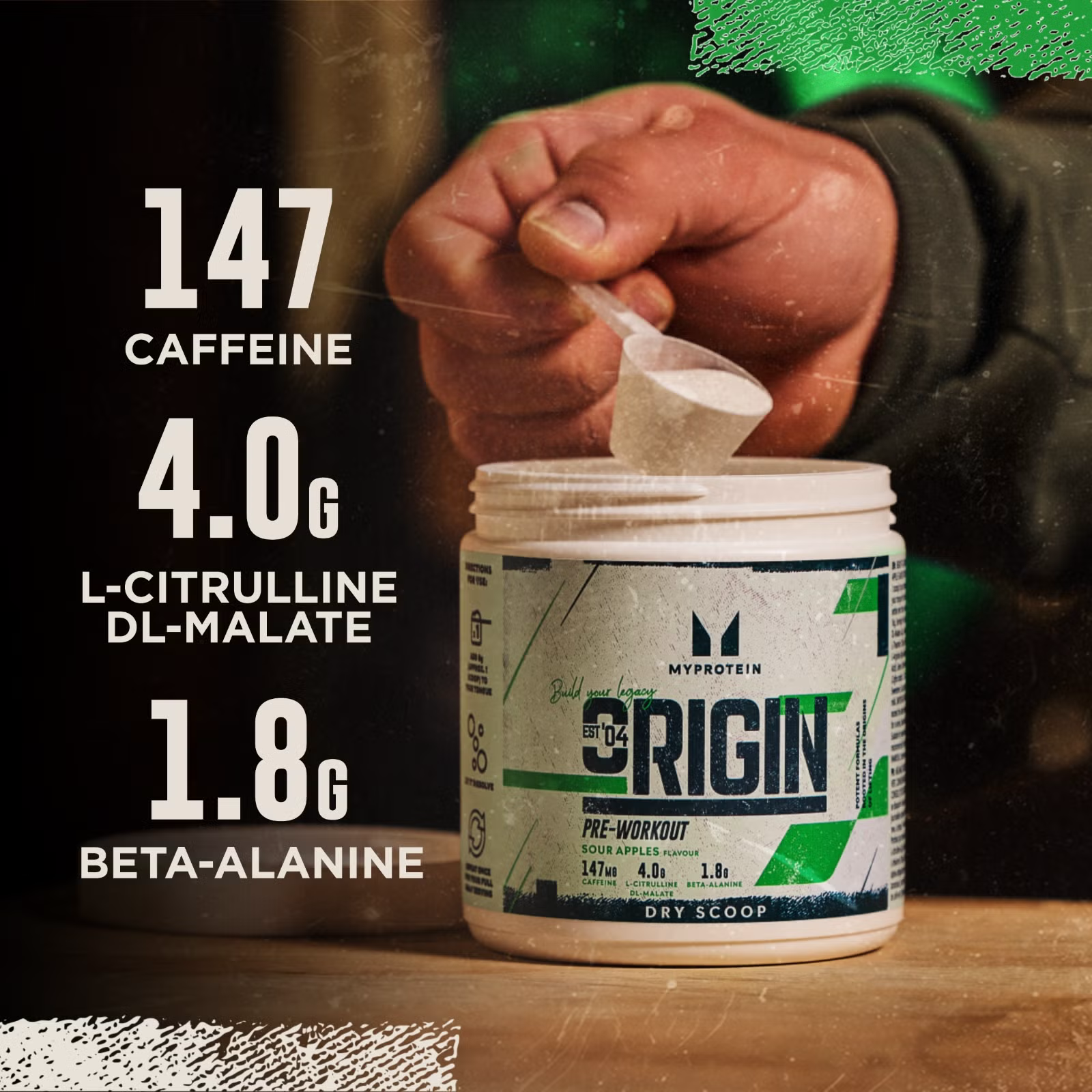 MyProtein Origin Pre-Workout Dry Scoop introduces an innovative fast-melt formula. Each serving provides a combination of caffeine, citrulline malate, beta-alanine, and L-theanine. With no mixing or water required, it is available in a refreshing Sour Apples flavour.